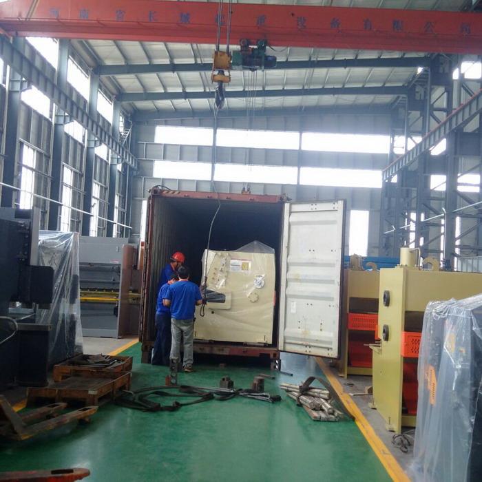 Сьогодні ми завантажили шість встановлює гідравлічні Гільйотина зсувне машини і преси Гідравлічні гальмівні згинальних верстатах, контейнери, ці машини буде експортуватися в Південній Азії замовника.